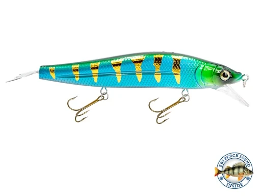 FLIPPER is the only dive and rise jerk bait, which is also a crankbait making it very versatile for straight trolling. The rear metal tail provides flash and depth/wobble, and is adjustable for more of a free glide action-or more wobble it’s 10” in length not including tail and weighs in at 3.7 oz. With the internal weight transfer system to help you cast further or work the bait falling nose first or tail first ignites the bites, couples with our EBS TechnologyTM which call the fish in from double the distance of ant traditional lures with rattles.
