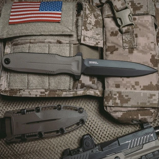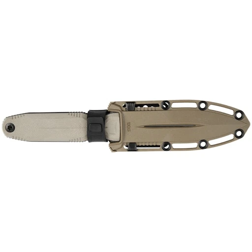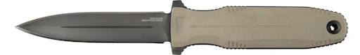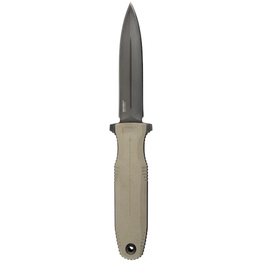 Representing an evolutionary step in hard-use fixed blade knives, Pentagon FX is a full-sized knife made for the modern-day warfighter. It features a double-edge CYRO S35VN full-tang steel blade, removable G10 handles and a GRN sheath compatible with SOG’s next-generation Universal Mounting System. It’s fully customizable to meet the demands of various missions, and purposefully designed to exceed expectations.nPart # 17-61-02-57