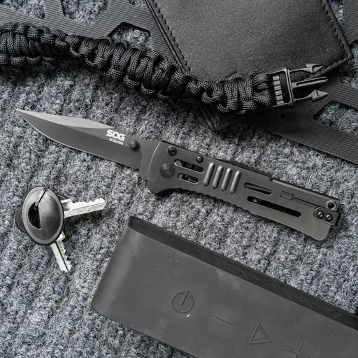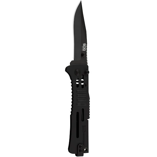 Our technical assisted folding knife line stands out by virtue of simplicity and minimalism. It doesn’t try to be the biggest or the loudest in the crowd. It is unobtrusive but always there when you need it. Constructed from a single piece of steel, SlimJim is just that, the slimmest assisted knife in the world. Start to open the blade and let SOG Assisted Technology (S.A.T.) finish the action with a bang, using one of the surest assisted technologies out there. Tactile bumps and cutouts aid in control while all features are purposeful and functional. The patent-pending safety is used to insure the retention of the blade in the handle as well as acts as a double lock in the open position. The stealth carry clip is reversible. Item SJ32-CP”